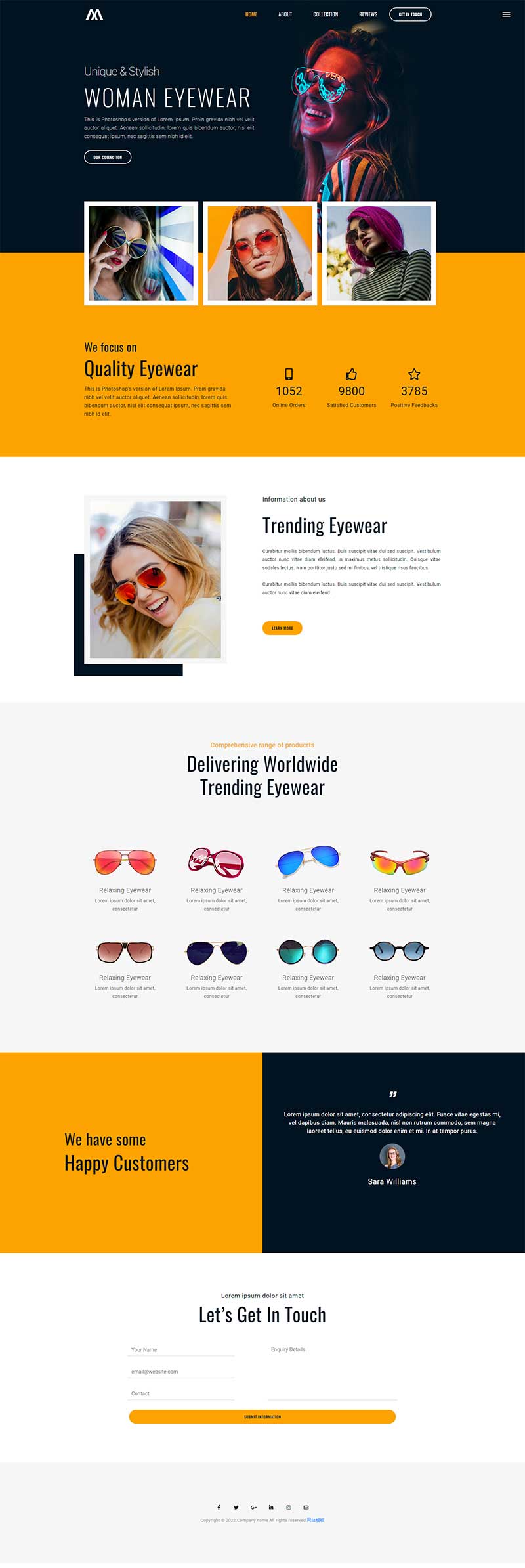时尚女士墨镜品牌宣传网站模板是一款适合时尚女士墨镜品牌宣传介绍服务网站模板下载。提示:本模板调用到谷歌字体库,可能会出现页面打开比较缓慢。
