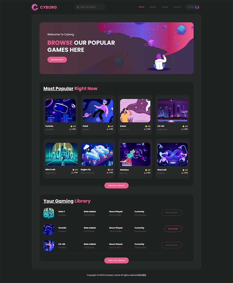 HTML5热门游戏体验宣传网站模板是一款热门游戏体验网站模板下载。提示:本模板调用到谷歌字体库,可能会出现页面打开比较缓慢。